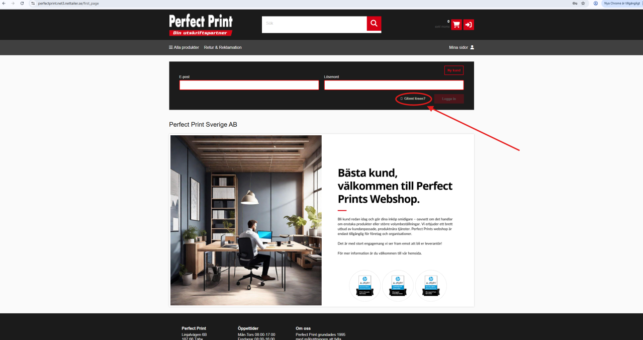 Klicka på "Logga in" och välj alternativet "Glömt lösenord". Du kommer att få instruktioner skickade till din e-postadress. När du har följt instruktionerna kan du logga in med ditt nya lösenord. Om du inte haft konto på tidigare webshop klickar du istället på "Ny Kund"